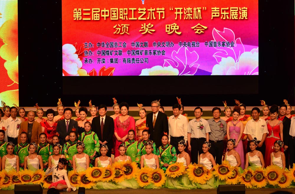 中国文联党组副书记、副主席李屹,中国煤炭工业协会副会长、中国煤矿文联主席、第三届中国职工艺术节组委会顾问梁嘉琨,中国文联副主席、中国音协分党组书记、副主席徐沛东,中华全国总工会宣教部部长李守镇,中国文联国内联络部主任罗成琰,中国煤矿文化宣传基金会理事长、中国煤矿文联副主席庞崇娅,开滦集团公司总经理裴华、党委副书记庞学东、工会主席王中昌以及中华全国总工会、中国文联、中国音协、中国煤炭工业协会、河北省政府、河北省国资委等有关方面领导出席了颁奖晚会,并为获奖单位和个人颁奖。