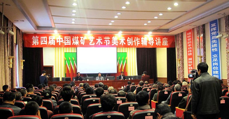 会上鹤岗矿业公司工会文体部主任周兴华同志首先致辞。随后,中国煤矿文联美术家协会主席吴凤仪同志讲话,详细介绍了第四届中国煤矿艺术节美术展览的相关内容和要求。赵小刚、仲伟权、张霖生等三位艺术家分别作了油画与国画花鸟画、山水画的讲座,并在会后进行了现场绘画演示和点评工作。