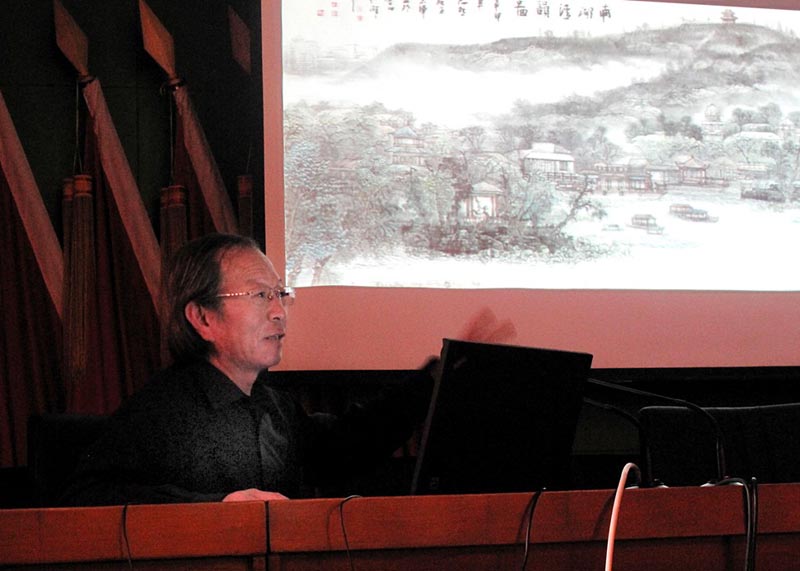 中国煤矿文联美术家协会国画艺委会副主任、开滦画院院长张霖生作山水画艺术讲座