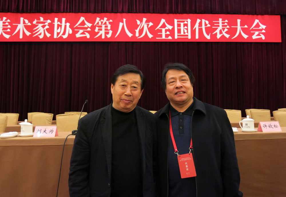 新当选的中国美协主席刘大为与煤矿美协主席吴凤仪在会上合影