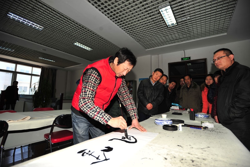 中国煤矿书协副主席、秘书长盛军带领文艺志愿者与矿区书法爱好者