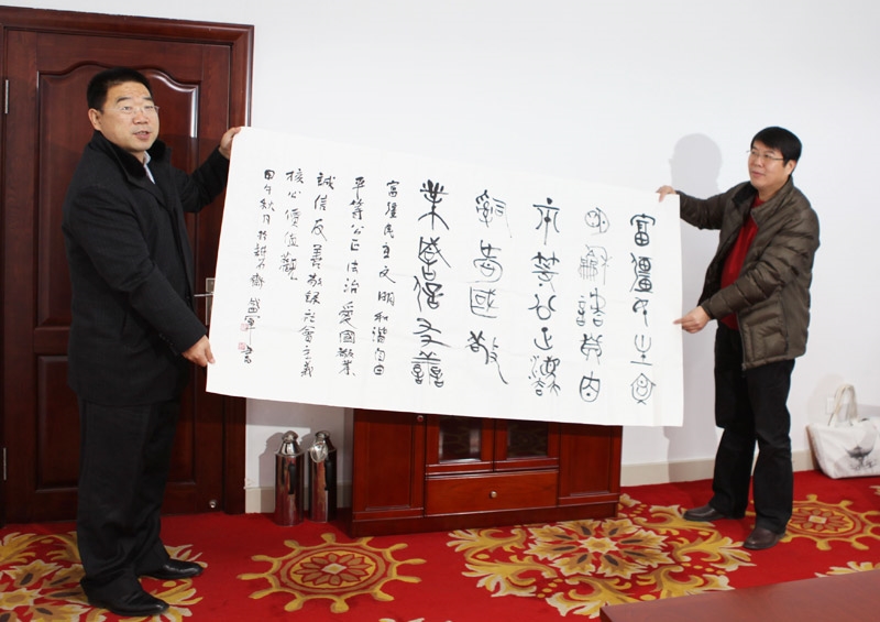 中国煤矿书协副主席、秘书长盛军向矿区赠送书法作品
