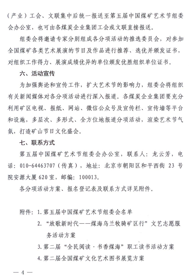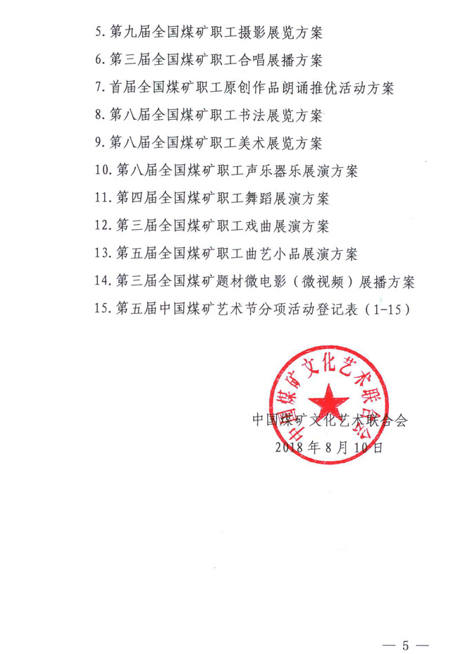关于举办第五届中国煤矿艺术节分项活动的通知