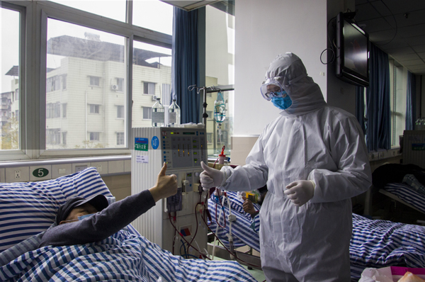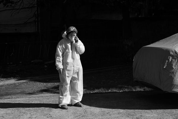 2020年2月18日,新冠肺炎疫情期间。湖南省煤业集团湘永矿业公司对复工复产人员进行核酸检测,一名参加检测取样的医务人员给家人通电话报平安,让家人放心。