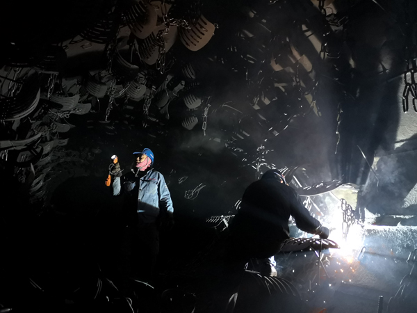 2020年11月22日,兖矿鄂尔多斯能化转龙湾选煤厂707干燥桶内扬煤导流板损坏,影响到选煤厂甚至矿井正常生产,必须应急抢修,历经近三天的时间顺利完工。
