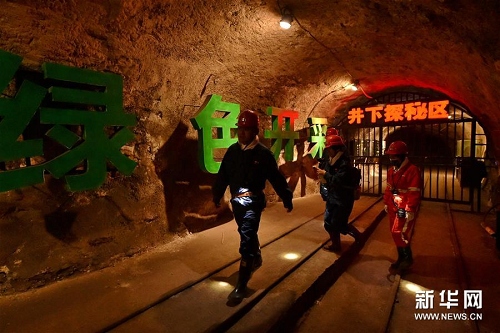 在山西晋华宫国家矿山公园体验井下探秘游(5月16日摄)。新华社记者 曹阳 摄