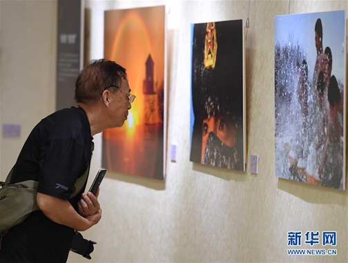 7月4日,几名参观者在观看展览。新华社记者 李贺 摄
