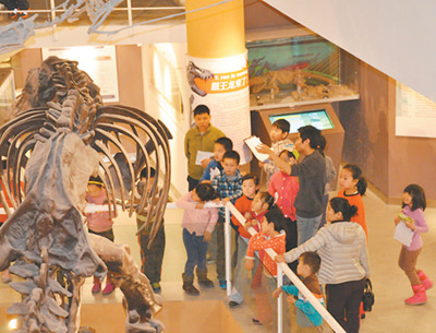 观众在北京古脊椎动物博物馆体验奇妙夜。 资料图片