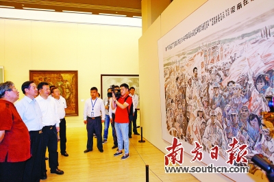 刘奇葆等观看广东美术百年大展展出作品《习仲勋在南梁》。 张涛摄
