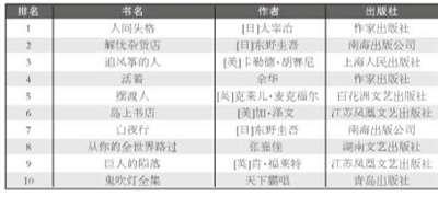 据数据统计,2017年上半年女性购书量是男性购书量的1.5倍,女性最爱《解忧杂货店》《白夜行》等心理情感类图书,男性青睐《嫌疑人X的献身》《大学英语四六级》等心理悬疑、工具类图书。