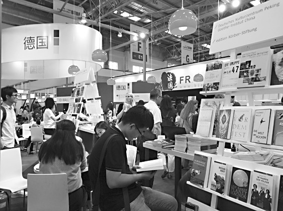 当记者来到海外馆里最热闹的展台——法国国家展团的展台时,眼前的一幕给记者留下了深刻的印象。只见环绕展台四周的书架上,摆满了琳琅满目的法国版书籍,其中涉及文学、儿童、社科、自然等方方面面。