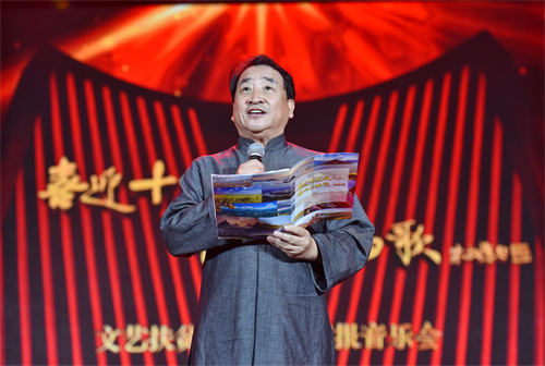 姜昆作为推介人,对贫困县和创作的形象歌曲进行推介