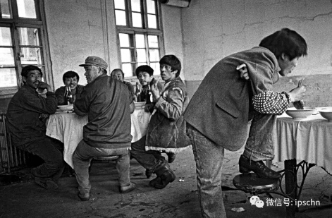 8/20 1988年,辽宁铁法矿务局,下班的矿工在餐厅吃饭。