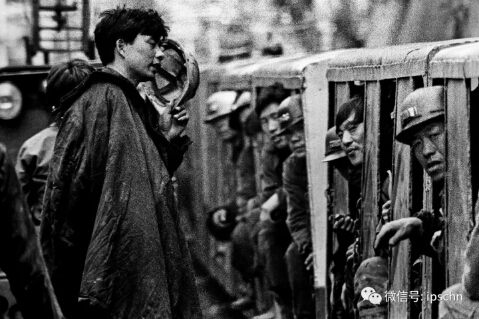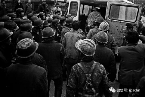 2/20 1990年,北京门头沟矿务局王平村煤矿,乘坐人车等待下井的矿工。