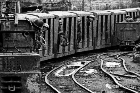 4/20 1989年河北唐山开滦矿务局,准备乘坐矿车下井工作的矿工。