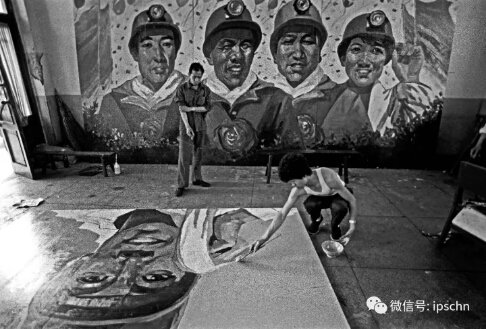 9/20 80年代摄于山西石圪节煤矿。当时该矿是全国先进煤矿,全国煤炭行业学习石圪节,该矿为展现矿工的高大形象,矿工会正在绘制煤矿工人形象宣传画。