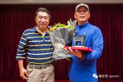 ▲著名摄影家、中国摄影著作权协会副主席解海龙为张兆增先生(右)颁奖。