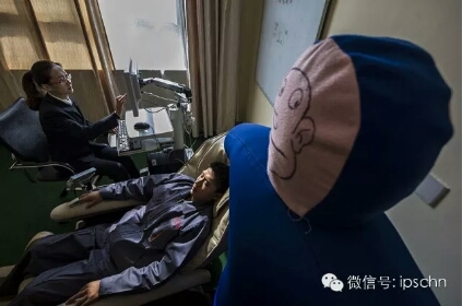 18/20 2013年,山东梁宝寺煤矿。针对青年工人工作中不稳定情绪,矿上成立了心理减压室。青年工人在工作中遇到压力后可以在此接受心理康复治疗。