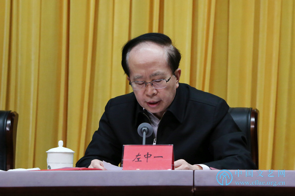 3月23日,中国文联召开2017年度总结表彰大会。图为中国文联党组成员、副主席左中一宣读《中国文联系统2017年度表彰奖励情况通报》