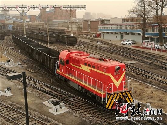 3月28日,中国铁路源头博物馆在唐山市开滦国家矿山公园正式揭牌开馆。图为在唐胥铁路景观天桥俯瞰,唐胥铁路起始之处,载煤机车轰鸣而过