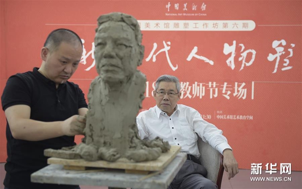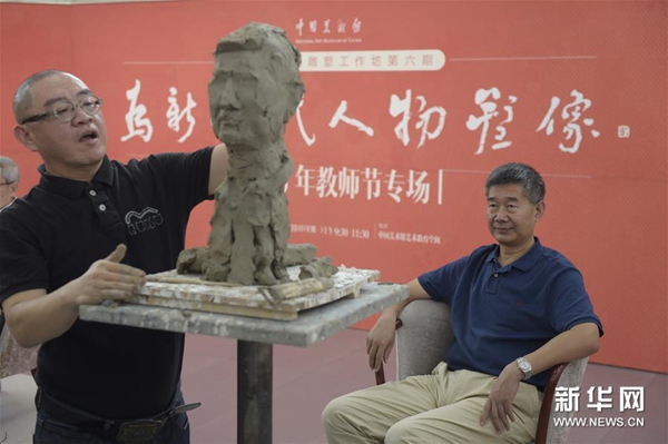 新华社北京9月10日电  (记者周玮)为庆祝广大教师的节日,通过艺术创作和艺术教育的方式推动形成尊师重教的良好社会风尚,中国美术馆9月10日上午在馆内艺术教育空间举行“为新时代人物塑像:2018年教师节专场”雕塑工作坊活动,邀请雕塑家现场为优秀教师代表塑像。