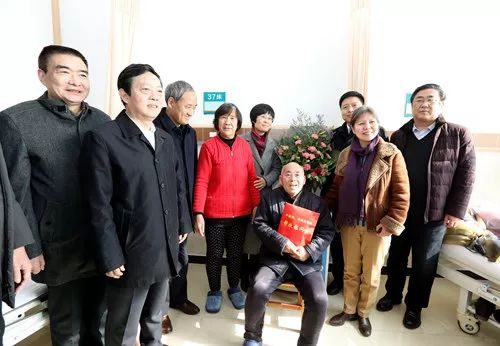 焦作市委副书记刘涛代表市委、市政府向谢延信送上了鲜花和新春的祝福,并详细询问了谢延信家里生活情况。“谢师傅,我们来看看您,家里有什么困难要及时向组织提出来,并现场要求中站区、解放区有关负责人做好劳模先进的帮扶工作,叮嘱中央医院医护人员要全心全意治疗好,照顾好谢延信。”