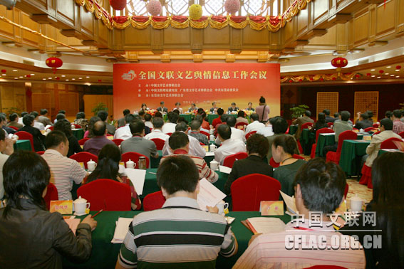 4月11日至13日,由中国文联主办,中国文联理论研究室、广东省文联、东莞市委承办,东莞市文联协办的2011年全国文联文艺舆情信息工作会议在广东东莞召开。中国文联党组成员、书记处书记夏潮出席会议并讲话。广东省委宣传部副部长顾作义,中国文联理论研究室副主任刘国强,广东省文联党组书记、副主席白洁,中宣部舆情局网络舆情处副处长吴玉荣,中宣部舆情局办公室副调研员段雪梅,东莞市委常委、市委宣传部部长王道平,中国文联理论研究室副巡视员朱丽华等出席开幕式。中国文联各团体会员单位、各直属单位、机关各部室有关人员130余人参加会议。会议由刘国强主持。