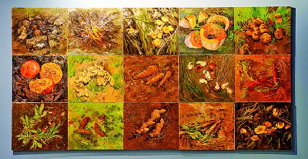 野菜、草根、树皮、皮具,当这些红军长征中的真实“食物”被一一收集起来,会给人带来怎样的震撼?在“功夫——中央美术学院造型学科基础部成立二十周年展”的现场,有一组特殊的油画作品。展厅内以三面墙的空间展出了造型基础部师生在红军长征经过的四川省若尔盖县,寻觅并绘成的一百幅油画《红军食谱》。