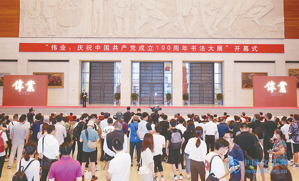 6月19日,“伟业:庆祝中国共产党成立100周年书法大展”在北京开幕,图为开幕式现场