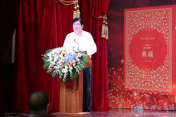 6月22日,庆祝中国共产党成立100周年《百部优秀剧作典藏》首发仪式在京举办。图为中国文联党组书记、副主席李屹讲话。中国文艺网 马征 摄。