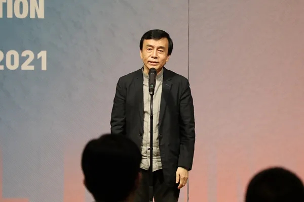 10月22日,“全国(大芬)中青年油画精品展(2012-2021)”于中国美术馆开幕。图为全国政协常委、中国美术家协会副主席、中国美术馆馆长吴为山致辞。中国文艺网 李想 摄