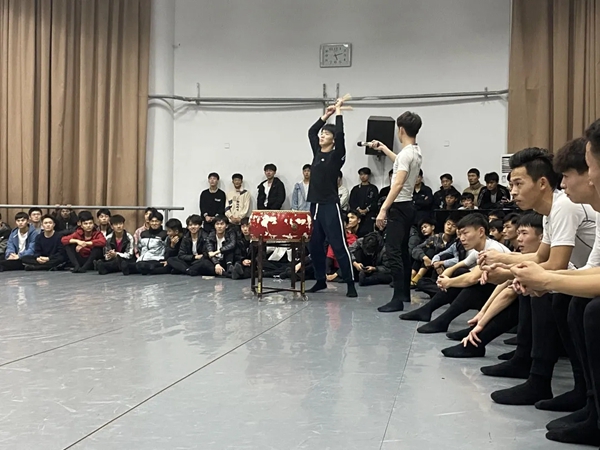 作为第十三届中国舞蹈“荷花奖”民族民间舞评奖终评金奖作品的《阳光下的麦盖提》成为了作品展示环节的亮点,演员们用饱满的热情、极富张力的肢体语言演绎出了新时代新疆各族人民的和谐幸福生活。来自山青院的《板儿一响当哩个当》也不甘示弱,借以“两铜板”的独特魅力和山东小伙儿的飒爽英姿再现了快书经典片段“武松打虎”,赢得在场师生的一致叫好。