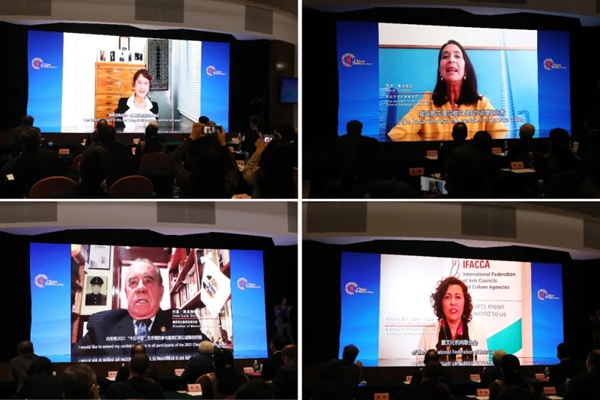 张雁彬在致辞中指出,在新冠肺炎疫情肆虐背景下,全世界的人们需要用艺术来驱散阴霾、温暖心怀、砥砺精神、增强信念。全世界的艺术家们更需要团结在一起,用有筋骨、有道德、有温度的文艺作品,为全球抗疫提供强大的精神力量。世界各国作为休戚与共的命运共同体,唯有不断增进交流互鉴,才能汇聚起强大的力量,为世界文明的发展与进步注入永恒的动力。
