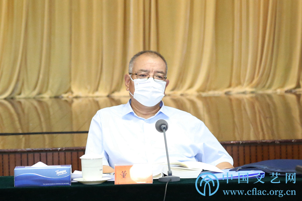 8月29日,中国文联党组理论学习中心组召开《习近平谈治国理政》第四卷专题学习研讨会。图为中国文联党组书记、副主席李屹主持会议并作总结讲话。中国文艺网 李想 摄