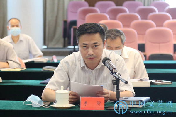 8月29日,中国文联党组理论学习中心组召开《习近平谈治国理政》第四卷专题学习研讨会。图为中国书协分党组书记、驻会副主席李昕作交流发言。中国文艺网 李想 摄