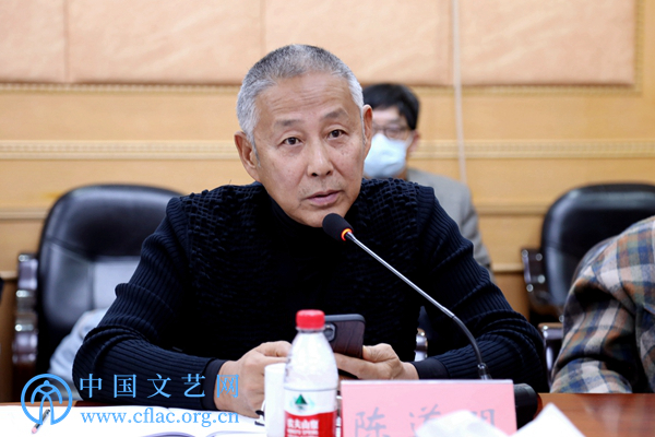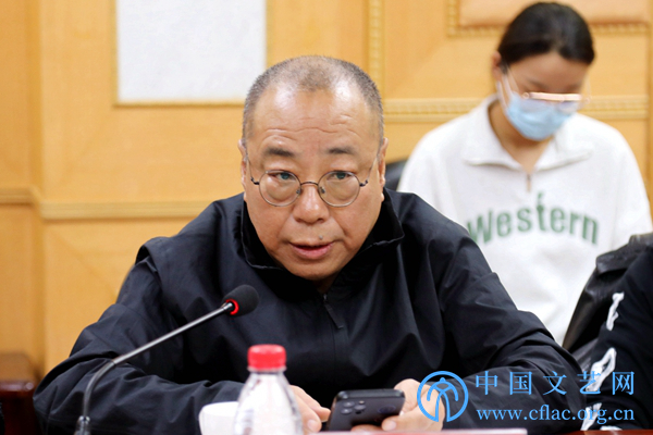 10月24日,中国影协召开学习贯彻党的二十大精神座谈会。图为中国电影表演艺术学会秘书长张光北在座谈会上发言。 中国文艺网 韩雪竹 摄