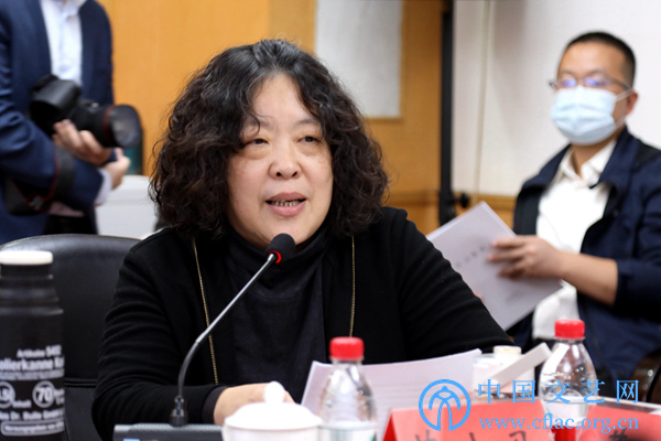 10月24日,中国影协召开学习贯彻党的二十大精神座谈会。图为中国电影导演协会会长李少红在座谈会上发言。 中国文艺网 韩雪竹 摄