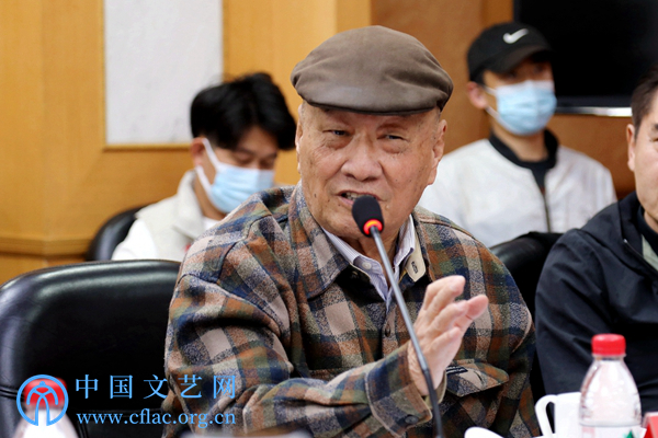10月24日,中国影协召开学习贯彻党的二十大精神座谈会。图为中国影协顾问丁荫楠在座谈会上发言。 中国文艺网 韩雪竹 摄