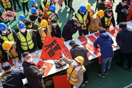 1月16日,安徽省文联十多位美术、书法、摄影工作者组成文艺小分队到合肥地铁S1线先行段项目工地,开展2023年“我们的中国梦”——文化进万家暨“送文化年货”活动,为一线建设者送去春联、国画、全家福等“文化年货”,让建设者们提前感受新年的喜悦。