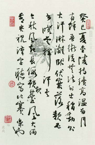 郑培亮写浊酒、香烟、商品房,读来令人会心一笑。漆钢去重庆龙咀公园、金山公园写联,别人准备的不好,遂自写山铺秀色,送荫拂座;水映岚光,花气宜人。孙晓云写癸巳夏,金陵持续高温两月有余,吾术后无法外出,稍动则大汗淋漓,伏案落款,必书晓云挥汗矣,又记中秋阖家聚于河西敏露新居,高楼赏景,吃螃蟹等居家琐事,读来亦清新可喜。将白话和生活记录引入书法,进行艺术化的表述,是生活审美化和审美日常化的规律。中国书协副主席言恭达认为,就好像星巴克推出的不只是咖啡,还有对咖啡的体验一样,书法也不应只是写字,而是几千年传承的生活方式、生存智慧与感悟。如果书法家陶醉于古董文明、化石文明而不自觉,就缺失了对生活的碰触和时代的担当。书法家孟鸿声说。