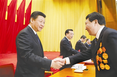 4月28日,2015年庆祝“五一”国际劳动节暨表彰全国劳动模范和先进工作者大会在北京人民大会堂隆重举行。中共中央总书记、国家主席、中央军委主席习近平发表重要讲话。新华社记者 鞠鹏 摄