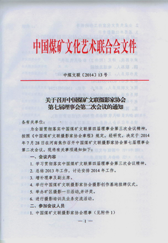 关于召开中国煤矿文联摄影家协会 第七届理事会第二次会议的通知 来源:中国煤矿摄影家协会 作者: 时间:2014-12-23 【字体:小 大】 附件:1.中国煤矿文联摄影家协会理事名单 2.参会人员回执 分享到: 【打印正文】