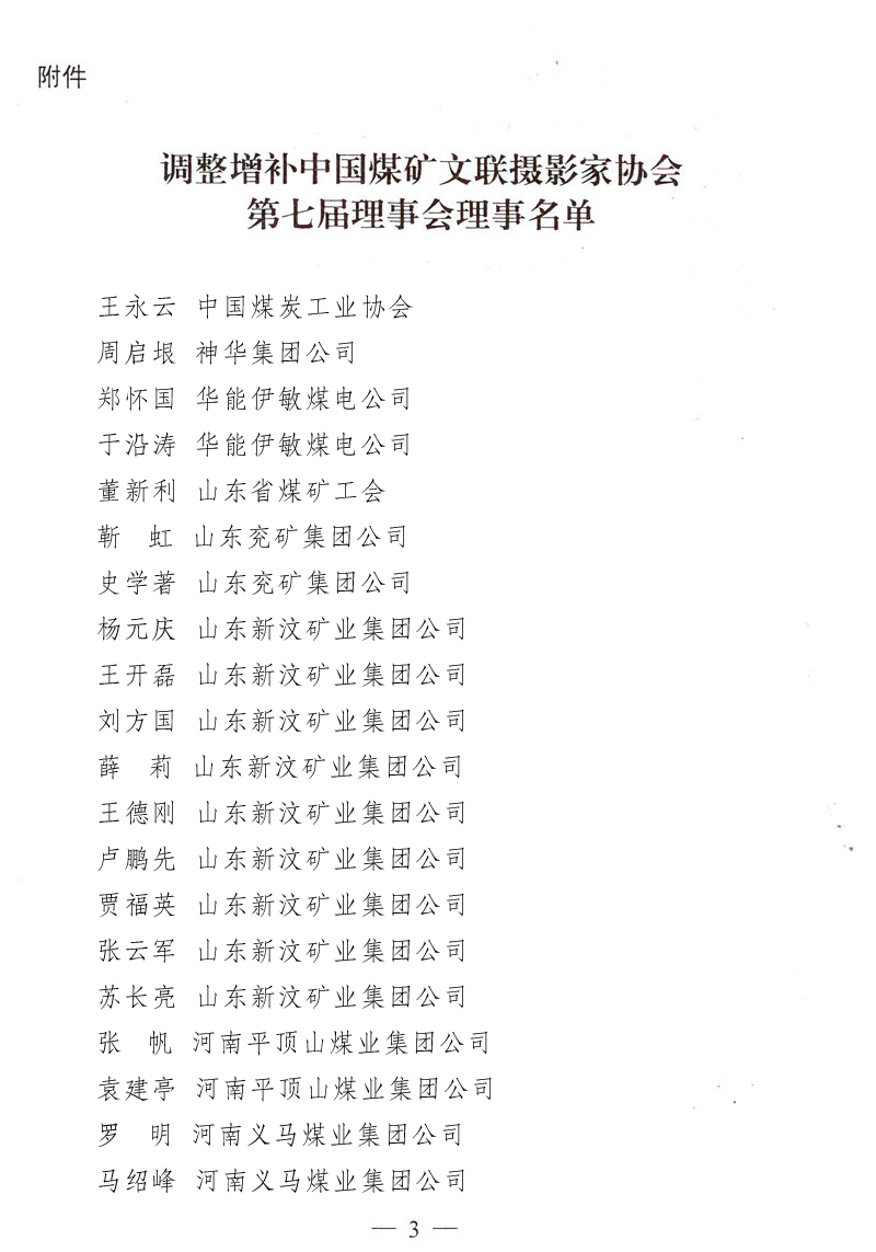关于中国煤矿文联摄影家协会第七届理事会增补副主席和调整增补理事的通知