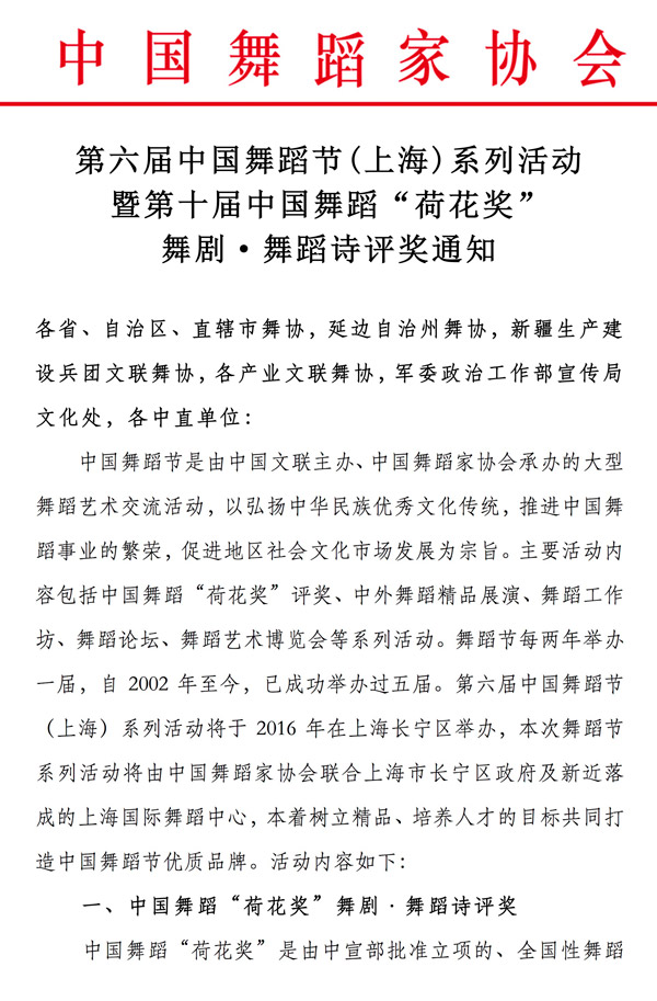 中国舞协:第十届中国舞蹈“荷花奖” 舞剧·舞蹈诗评奖通知 来源:中国舞蹈家协会 作者: 时间:2016-07-19 【字体:小 大】 附件1:第十届中国舞蹈“荷花奖”舞剧·舞蹈诗评奖报名须知 附件2:第十届中国舞蹈“荷花奖”舞剧·舞蹈诗评奖报名表 智能标签: 中国舞蹈家协会 相关内容 分享到: 【打印正文】