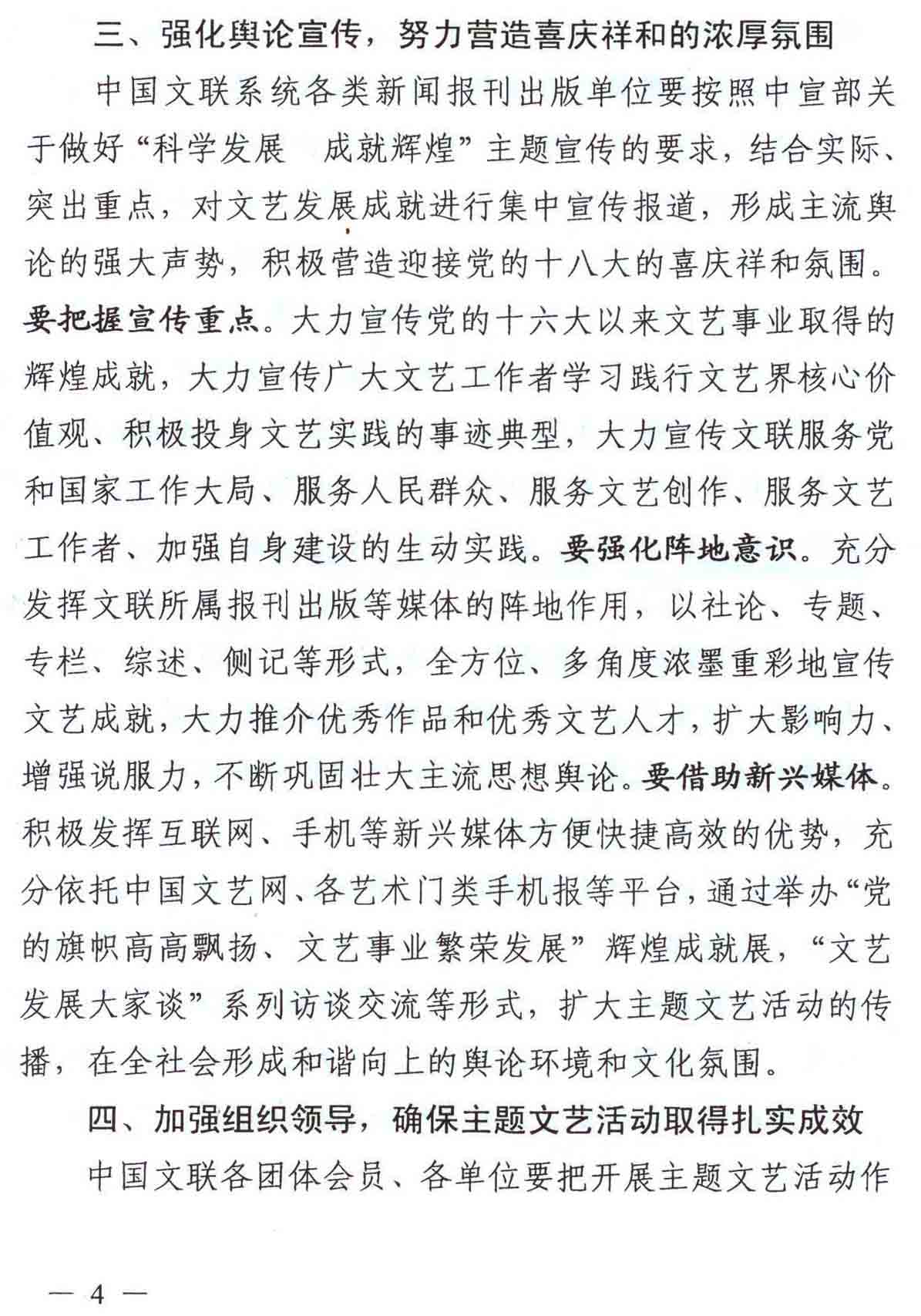 中国文联关于开展“党的旗帜高高飘扬、文艺事业繁荣发展”迎接党的十八大主题文艺活动的通知