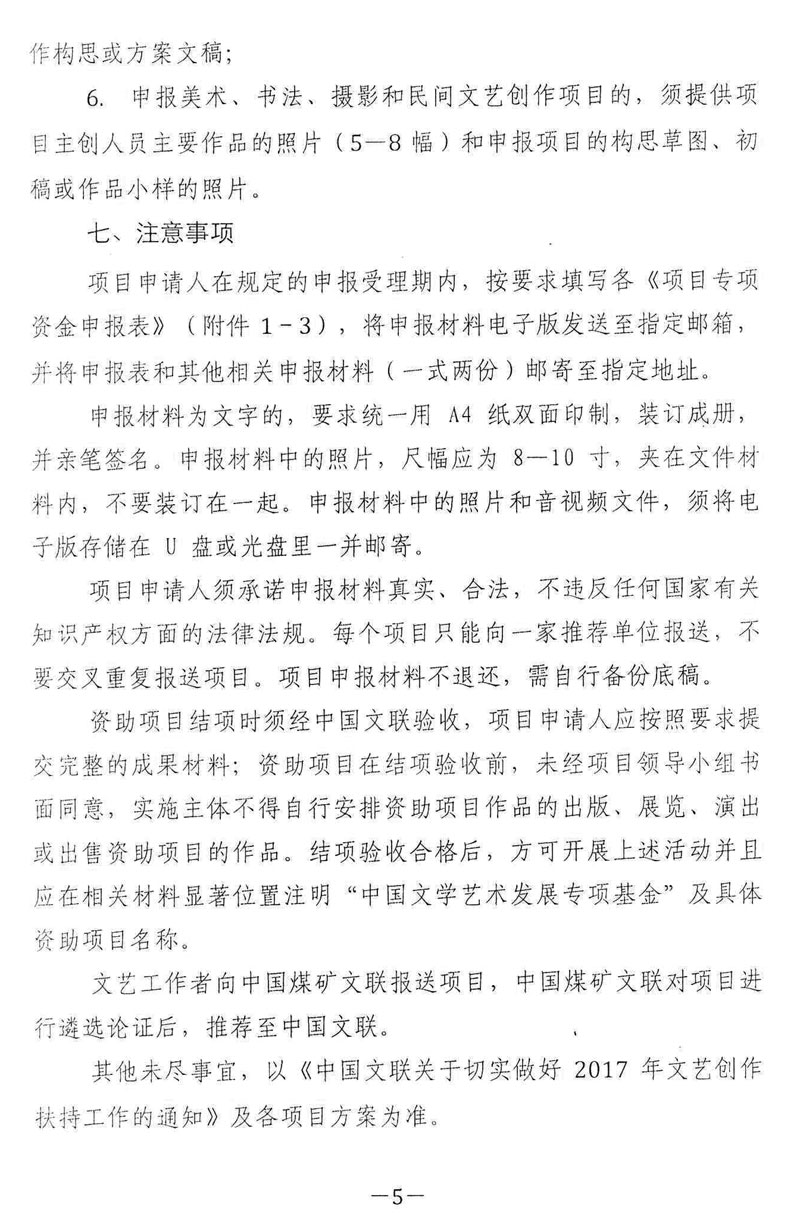 关于征集申报2017年中国文联文艺创作扶持项目的通知 来源:中国煤矿文联 作者: 时间:2017-01-20 【字体:小 大】 附件: 1.《中国文联2017年度“中国精神·中国梦”主题文艺创作工程项目专项资金申报表》 2.《中国文联2017年度“深入生活、扎根人民”主题实践活动项目专项资金申报表》 3.《中国文联2017年度青年文艺创作扶持计划项目专项资金申报表》 具体方案: 1.《中国文联2017年度“中国精神·中国梦”主题文艺创作工程总体方案》 2.《中国文联2017年度“深入生活、扎根人民”主题实践活动总体方案》 3.《中国文联2017年度青年文艺创作扶持计划总体方案》 智能标签: 中国文联 文艺 扶持 相关内容 分享到: 【打印正文】