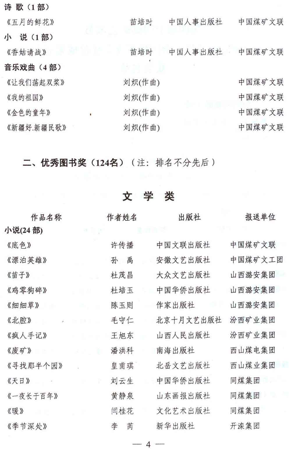 关于第四届中国煤矿艺术节“平庄煤业杯·全国煤矿文艺作品成果展”评奖揭晓的通知