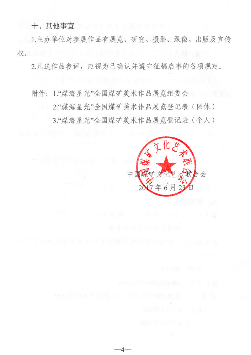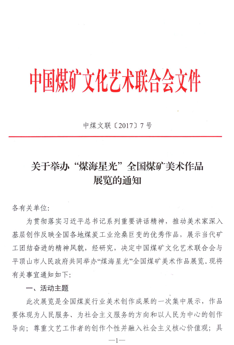 关于举办“煤海星光”全国煤矿美术作品展览的通知 来源:中国煤矿文联 作者: 时间:2017-06-28 【字体:小 大】 附件: 1.“煤海星光”全国煤矿美术作品展览组委会 2.“煤海星光”全国煤矿美术作品展览登记表(团体) 3.“煤海星光”全国煤矿美术作品展览登记表(个人) 智能标签: 中国煤矿文联 相关内容 分享到: 【打印正文】