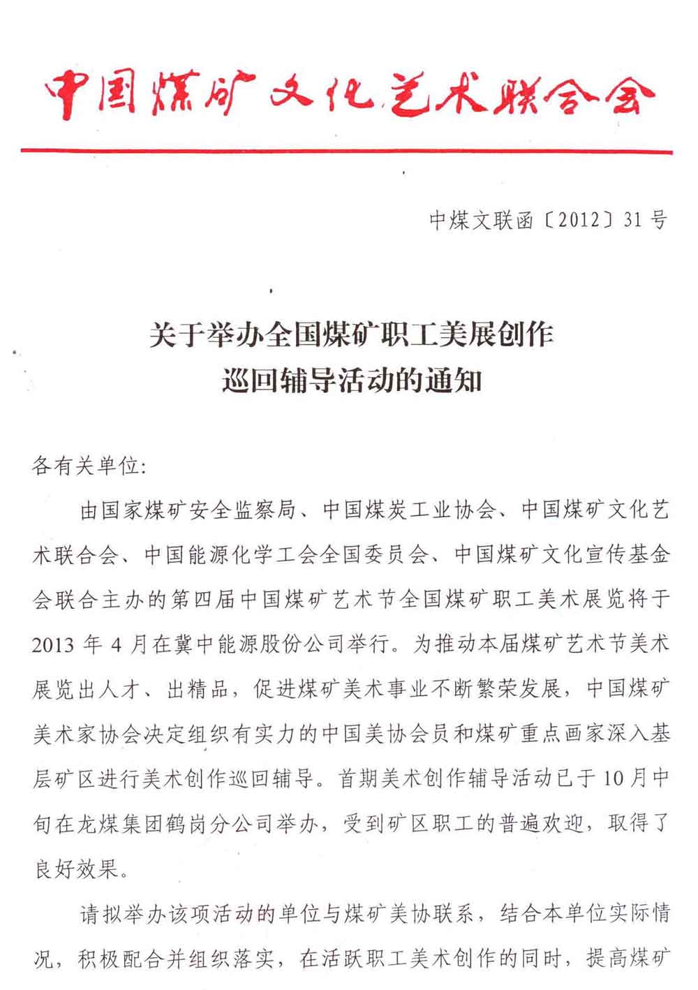 关于举办全国煤矿职工美展创作巡回辅导活动的通知