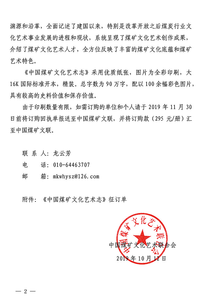 关于《中国煤矿文化艺术志》征订发行工作的通知 来源:中国煤矿文联 作者: 时间:2019-10-23 【字体:小 大】 附件:《中国煤矿文化艺术志》征订单 智能标签: 中国煤矿文联 相关内容 分享到: 【打印正文】